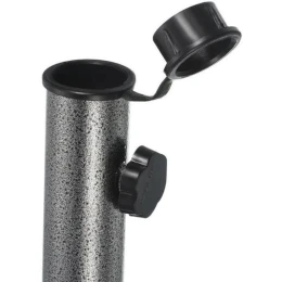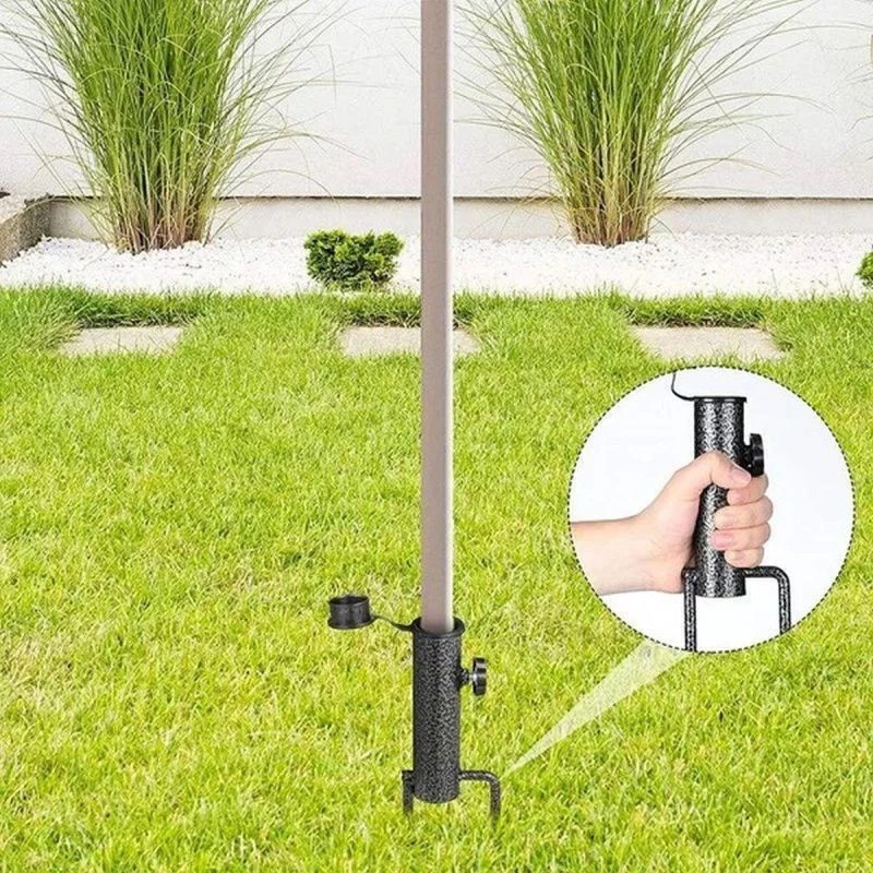 Baza - mocowanie umożliwia wygodny montaż parasola z uchwytem o różnej średnicy i na różnego typu podłożu, w piasku na plaży lub w ziemi nad jeziorem czy w ogrodzie. Nie potrzebujesz już specjalnej podstawy, aby zamontować swój parasol, wystarczy tylko wbić w podłoże stalową bazę i włożyć do niej parasol.