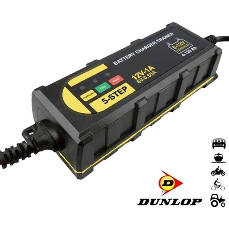 Prostownik automatyczny DUNLOP przeznaczony do ładowania 5 -etaopwego akumulatorów żelowych, AGM, MF oraz kwasowo-ołowiowo mokrych 6V/12V.