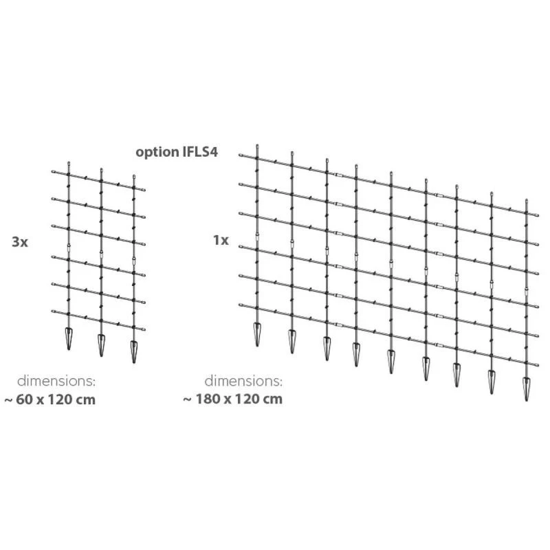 Dzięki modułowej budowie możesz dostosować podporę do swoich potrzeb. Możesz zbudować wysoką podporę pionową (120x180 cm) idealną dla roślin wysoko pnących, trzy oddzielne płotki (60x120 cm) lub szeroką podporę (180x120 cm), która zapewni stabilność nawet bardziej wymagającym gatunkom.