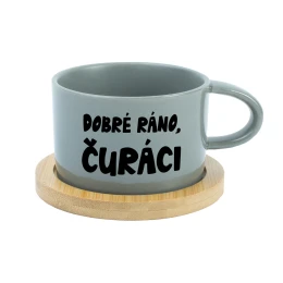 DOBRÉ RÁNO, ČURÁCI - šedý hrníček makronka 200 ml