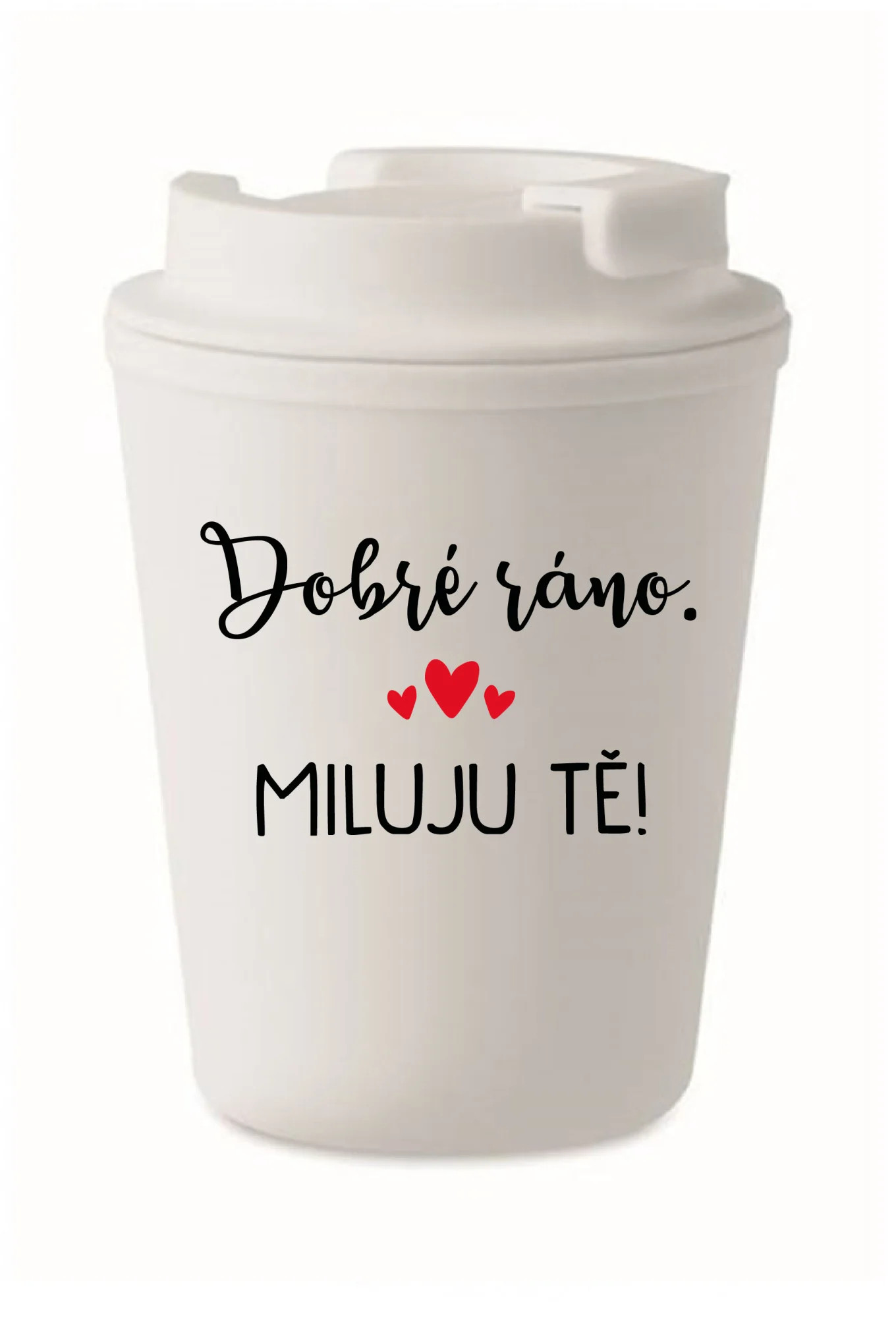 DOBRÉ RÁNO. MILUJU TĚ! - bílý termohrnek 300 ml
