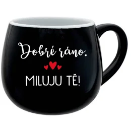DOBRÉ RÁNO. MILUJU TĚ! - černý keramický hrníček 300 ml