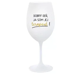 DOBRÝ DEŇ, JA SOM JEJ TERAPEUT! - biely pohár na víno 350 ml