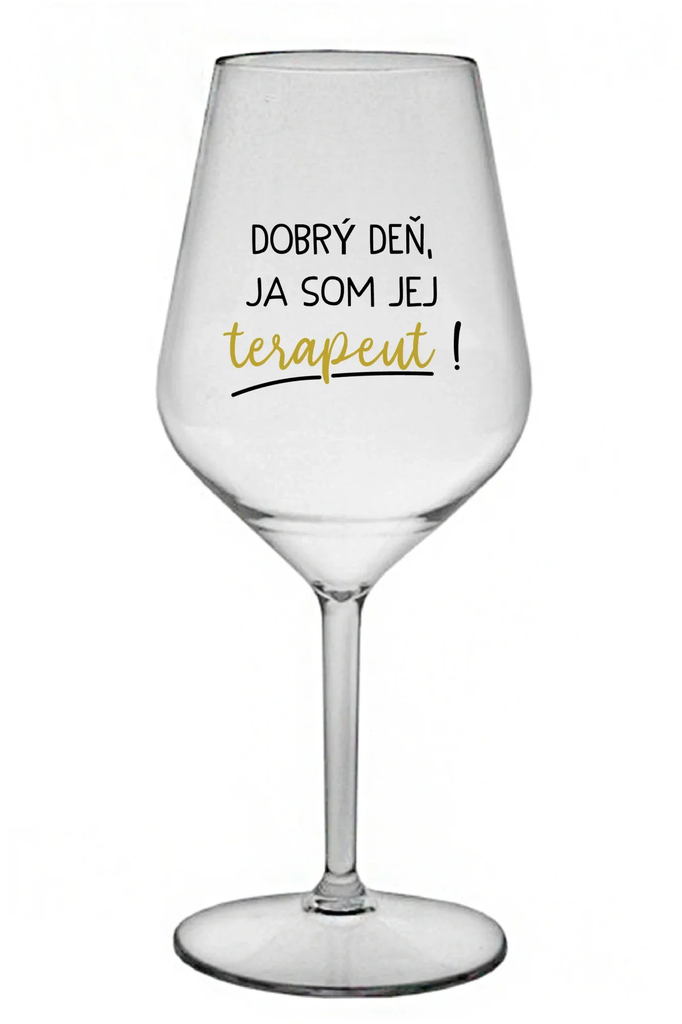 DOBRÝ DEŇ, JA SOM JEJ TERAPEUT! - priehľadný nerozbitný pohár na víno 470 ml