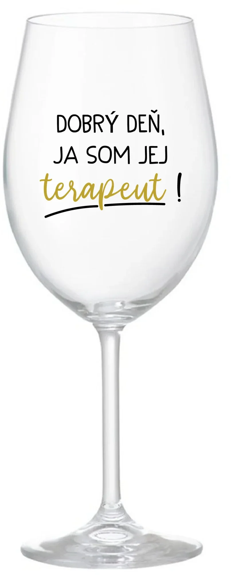 DOBRÝ DEŇ, JA SOM JEJ TERAPEUT! - priehľadný pohár na víno 350 ml
