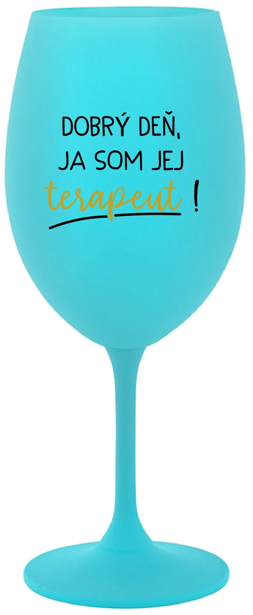 DOBRÝ DEŇ, JA SOM JEJ TERAPEUT! - tyrkysový pohár na víno 350 ml