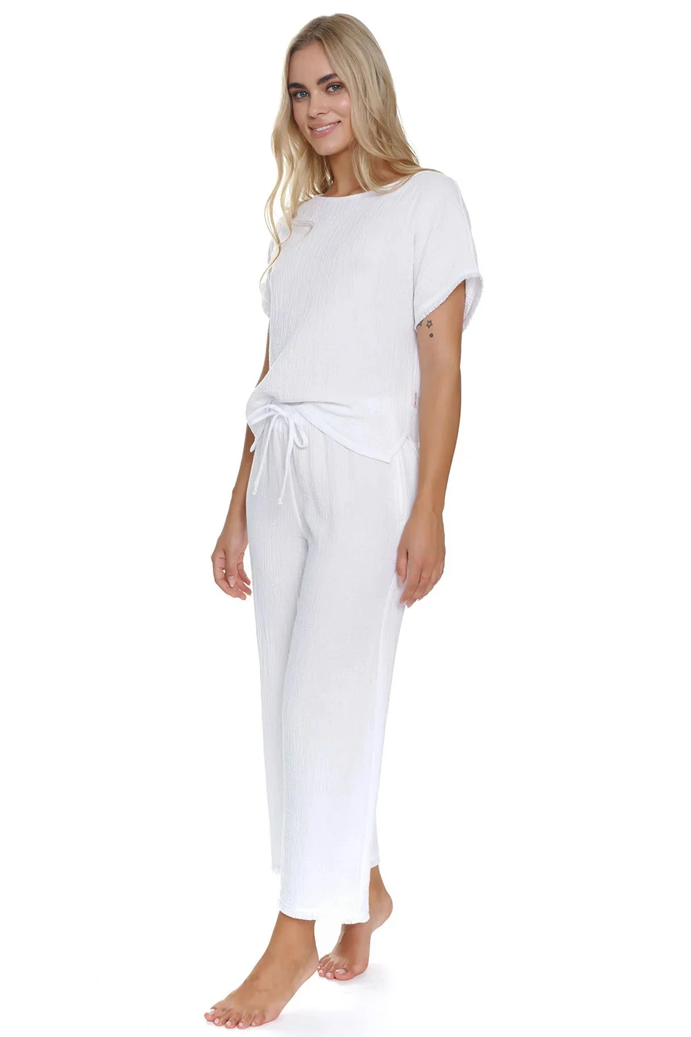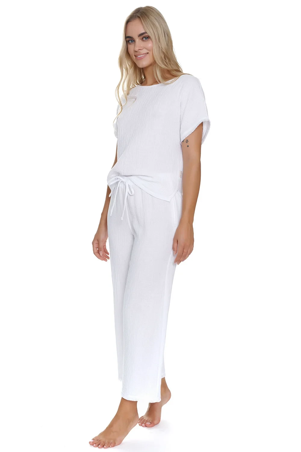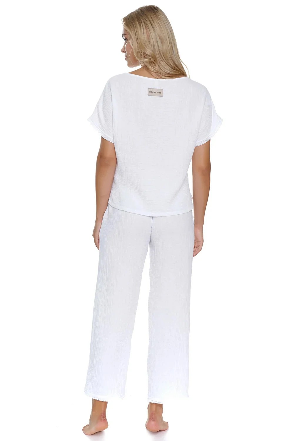 Noční košile značky Doctor Nap. model PM.5319. Výrobek je vyroben ze 100% bavlny. má kapsy. délka rukávu: krátký. délka: 7/8. Dámský výrobek. typ výstřihu: lodičkový výstřih.