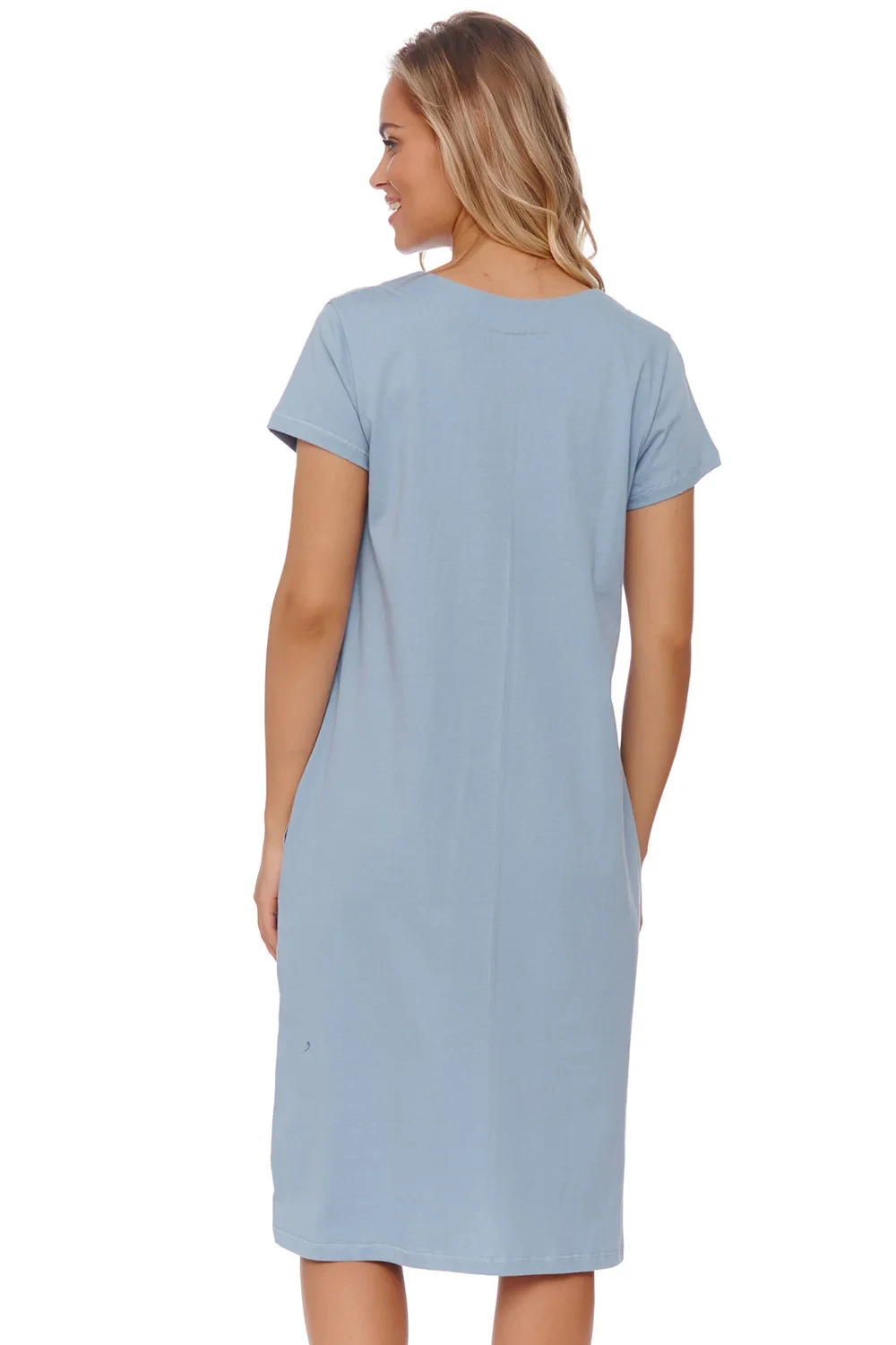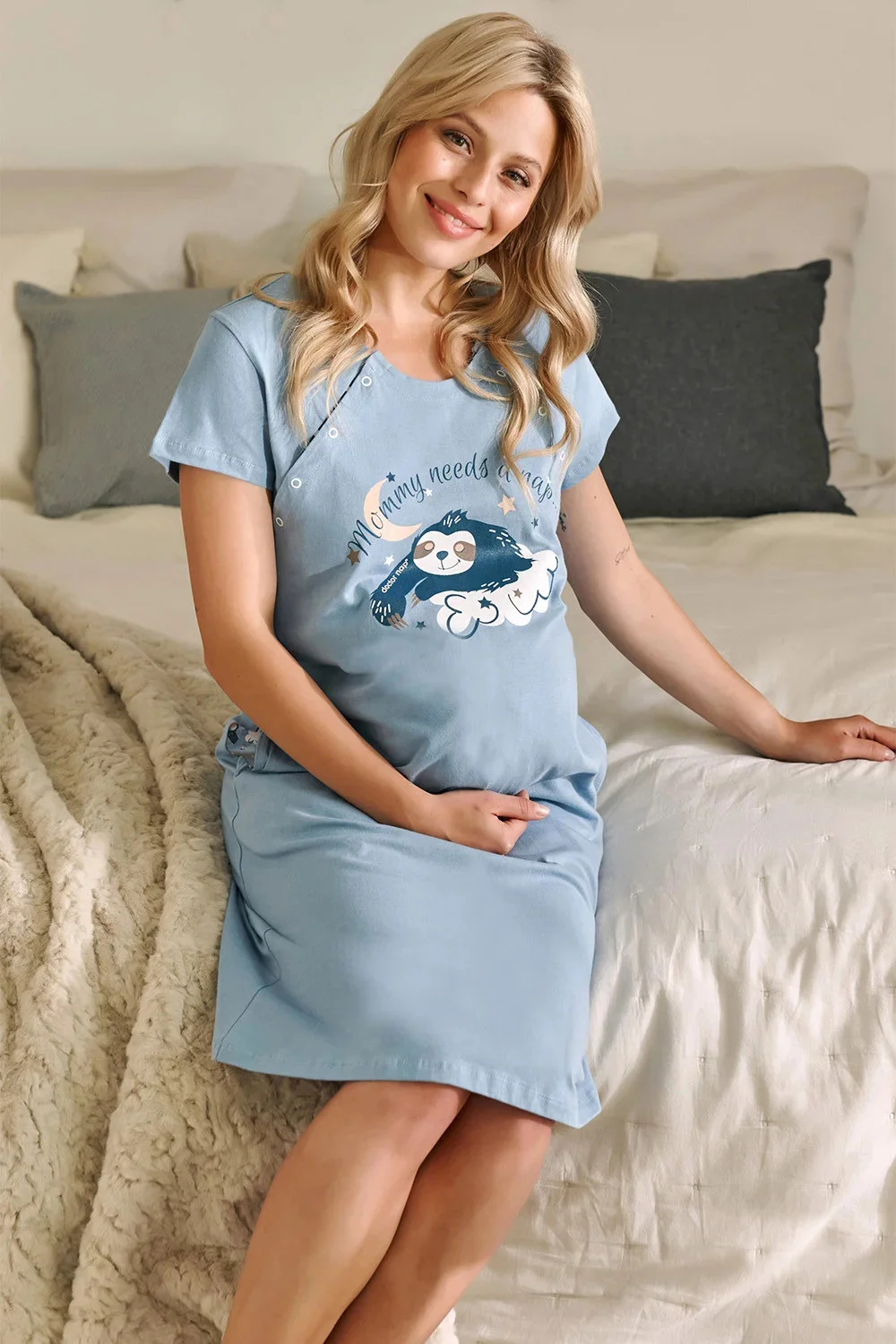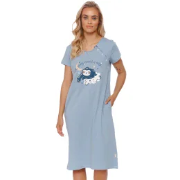 Noční košile značky Doctor Nap. model TCB.9992. výrobek je vyroben ze 100% bavlny. těhotenské oblečení. má kapsy. noční košile se zapíná na patentky. délka rukávů: krátké. dámský výrobek. typ výstřihu: kulatý.