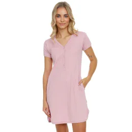 Noční košile značky Doctor Nap. model TM.4542. výrobek je vyroben ze 100% bavlny. těhotenské oblečení. místo zapínání: vpředu. má kapsy. zapínání noční košile na patentky. délka rukávů: krátké. délka: mini. dámský výrobek. typ výstřihu: do V.