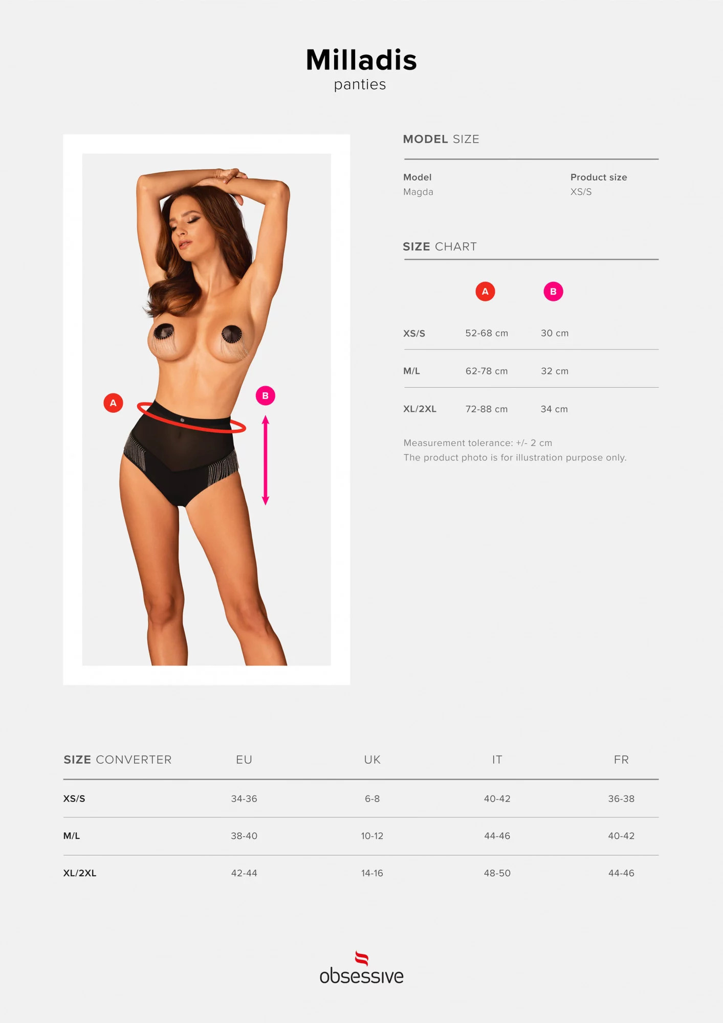 Produkt Dokonalé kalhotky Milladis panties - Obsessive prodáváme v těchto velikostech: XS/S, XL/2XL, M/La barvách černá5901688239988, 5901688250518, 5901688239995