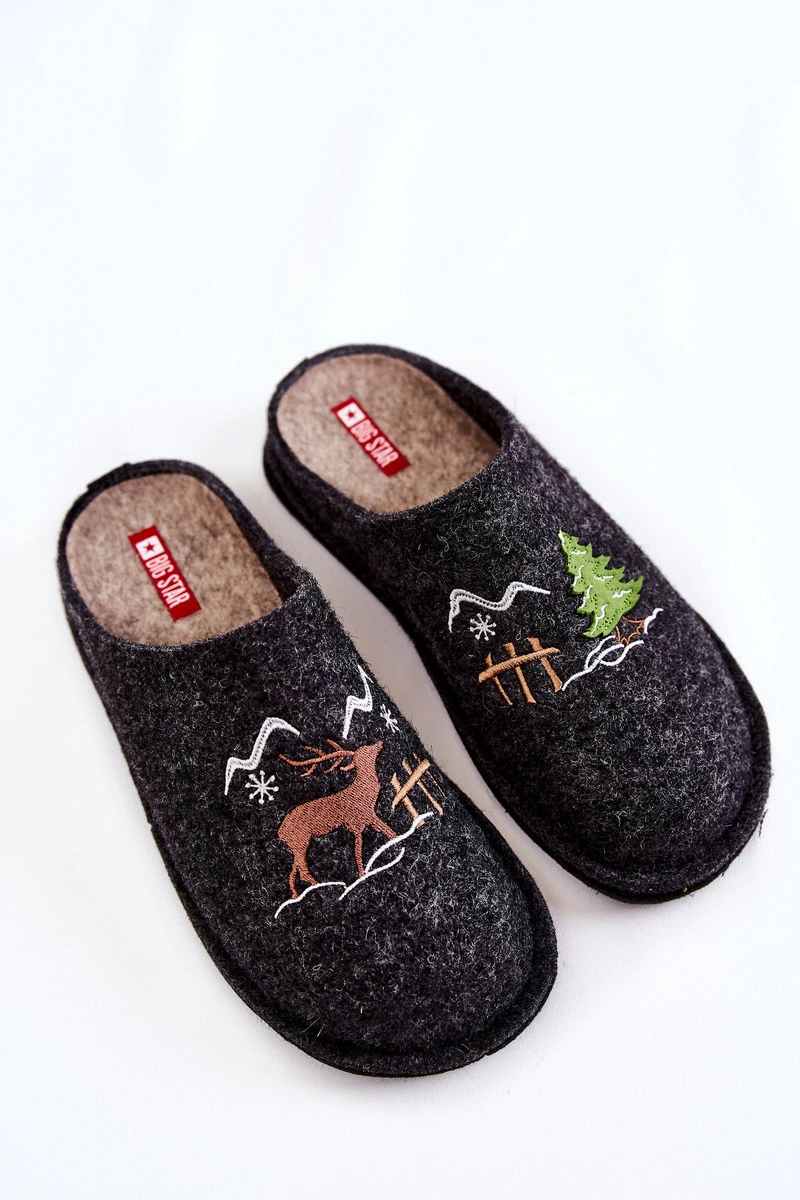 Jedinečné pantofle Big Star. Byly vyrobeny z vlněné plsti. Ozdobný motiv na přední straně charakterizuje tento model. Pantofle zabudované na platformě. Stélka v těchto pantoflích je navíc zateplená. Širší špička umožní pohodlné používání. Skvělá domácí obuv pro chladné večery a dny. Určitě se podívejte i na další pantofle! Při výběru velikosti použijte tabulku velikostí.