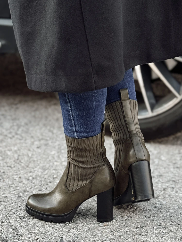 Výjimečné kozačky, které spojují eleganci s funkčností. Vysoký podpatek dodává sebevědomí, zatímco střih na míru s elastickým materiálem v oblasti kotníku zajišťuje dokonalé přizpůsobení. Stylová volba pro ženy, které si cení pohodlí, ale nechtějí se vzdát módních akcentů. Ideální do práce i na večerní vycházky.
