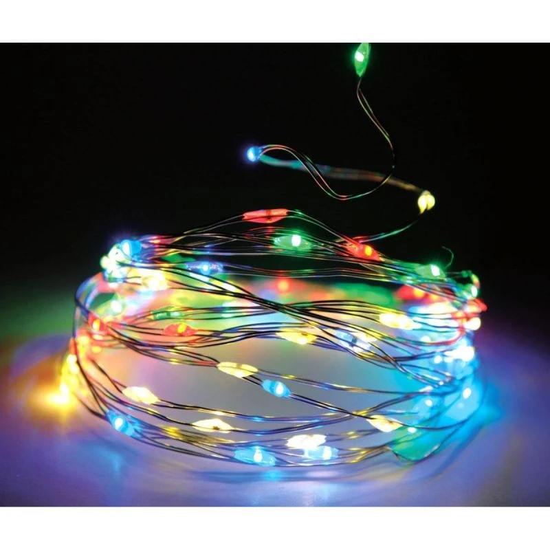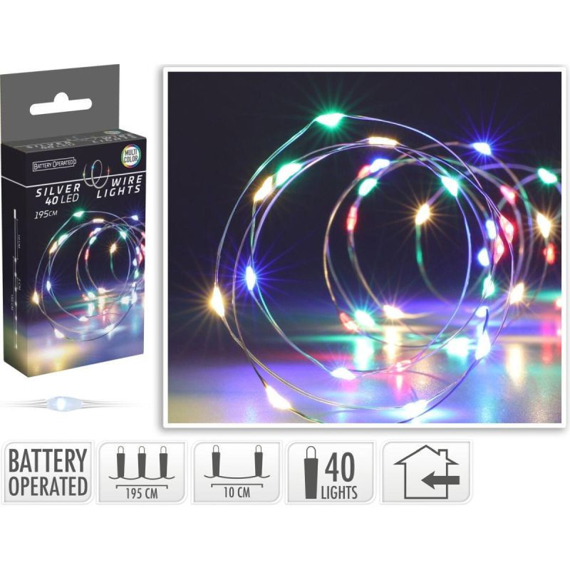 DRÁTĚNÁ SVĚTLA GIRLANDA NA BATERIE 40 VEDLA VÍCE BAREV