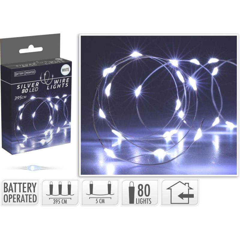 DRÁTĚNÁ SVĚTLA OVLÁDANÁ BATERIEMI GIRLANDA 80 VEDLA STUDENÁ BÍLÁ