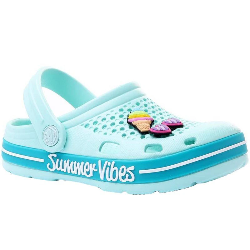 Dětské dřeváky Coqui Lindo v mátové a tyrkysové barvě 6423-409-4419