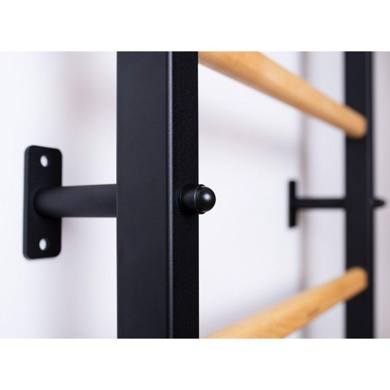 Na drabince gimnastycznej BenchK 222B może ćwiczyć cała rodzina. Jest bardzo łatwa w montażu, trwała i bezpieczna. Nie zajmuje dużo miejsca, a jej design przemyślano tak, aby drabinka była ciekawym elementem wystroju każdego pokoju. Szczeble z litego drewna bukowego ręcznie olejowane dwoma warstwami organicznego oleju niemieckiego, na bazie oleju lnianego który jest dopuszczalny do kontaktu z żywnością w połączeniu z czarnymi metalowymi elementami tworzą stylowy mebel. xml-ph-0002@