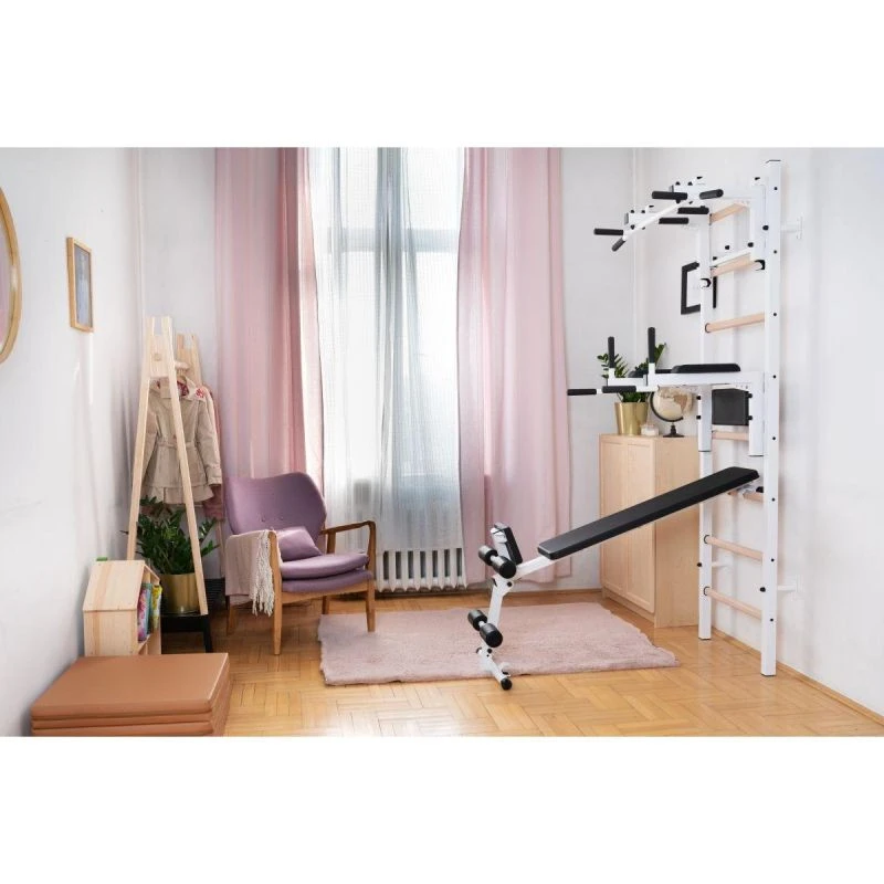 Drabinka gimnastyczna BenchK 232W to połączenie drabinki BenchK 210W z dodatkowym osprzętem w postaci: