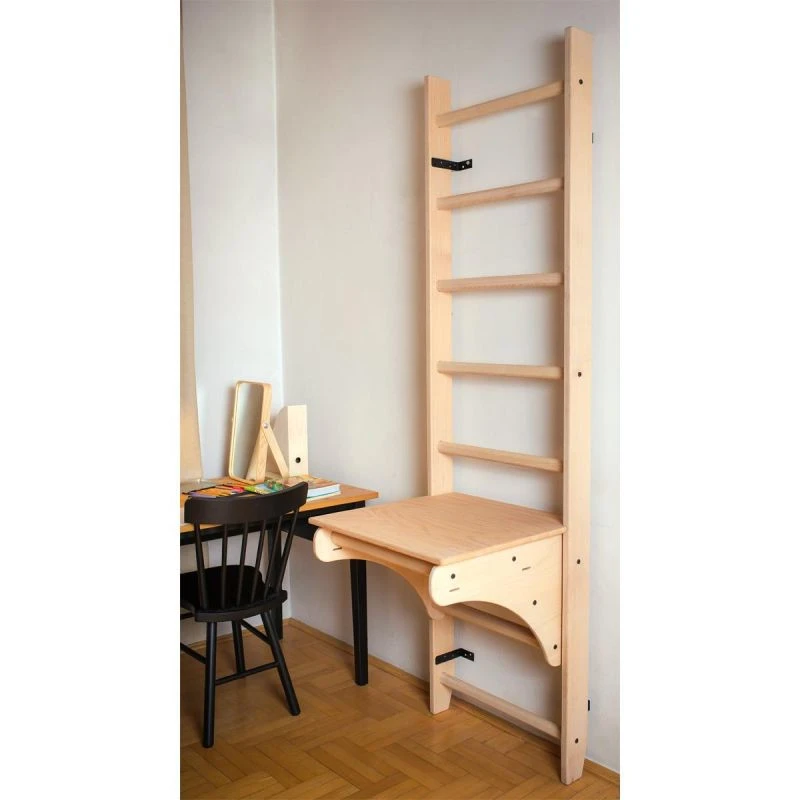 Odnímatelný překryt stolu z žebříku řady BenchK 110. Překrytí výsuvné tyče vyrobené z bukového dřeva vytvoří stylový a funkční stůl pro dítě nebo dospělého. Překrytí je ručně naolejované olejem nejvyšší kvality. Překrytí lze snadno vyjmout a uložit na vrchol žebříku, na tyč, aby se ušetřilo místo.