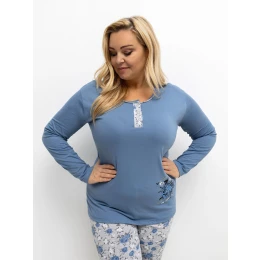 Rozměry pyžama velikosti XL měřené naplocho: halenka: šířka v podpaží - 56 cm, délka rukávu - 58 cm, celková délka - 69 cm, šířka dole - 56 cm, kalhoty: šířka v pase - 29 cm (naplocho), šířka v pase - 62 cm (při natažení), šířka v bocích - 57 cm, celková délka - 97 cm.