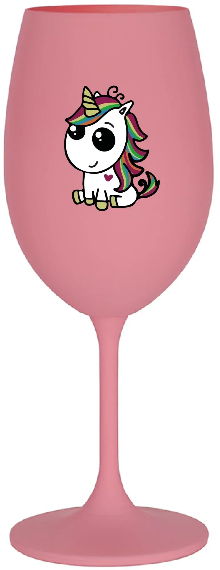 DUHOVÝ JEDNOROŽEC - růžová sklenice na víno 350 ml