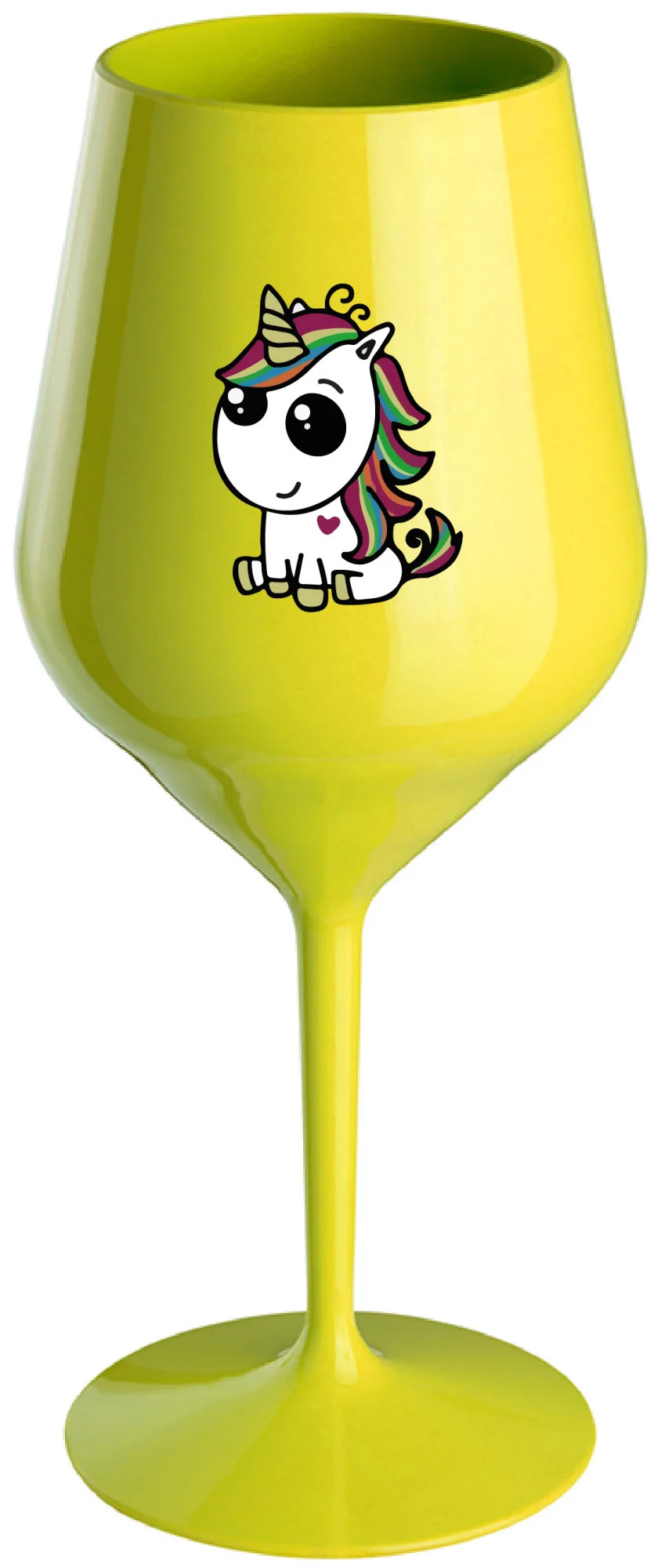 DUHOVÝ JEDNOROŽEC - žlutá nerozbitná sklenice na víno 470 ml