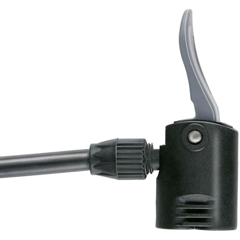 Inflátor je vybaven pákovou svorkou, která umožňuje bezpečné upevnění hadice pumpy např. k ventilku pneumatiky. Tím je zajištěno pevné spojení a zabráněno náhodnému sklouznutí hadice během huštění.
