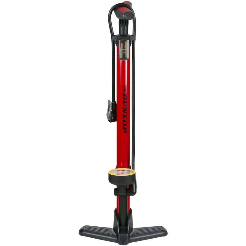 PUMPA NA PNEUMATIKY DUNLOP 230 Psi (16 barů) S MANOMETREM ČERVENÁ je praktický nástroj pro huštění pneumatik jízdních kol a dalších vozidel, jako jsou motocykly nebo automobily.