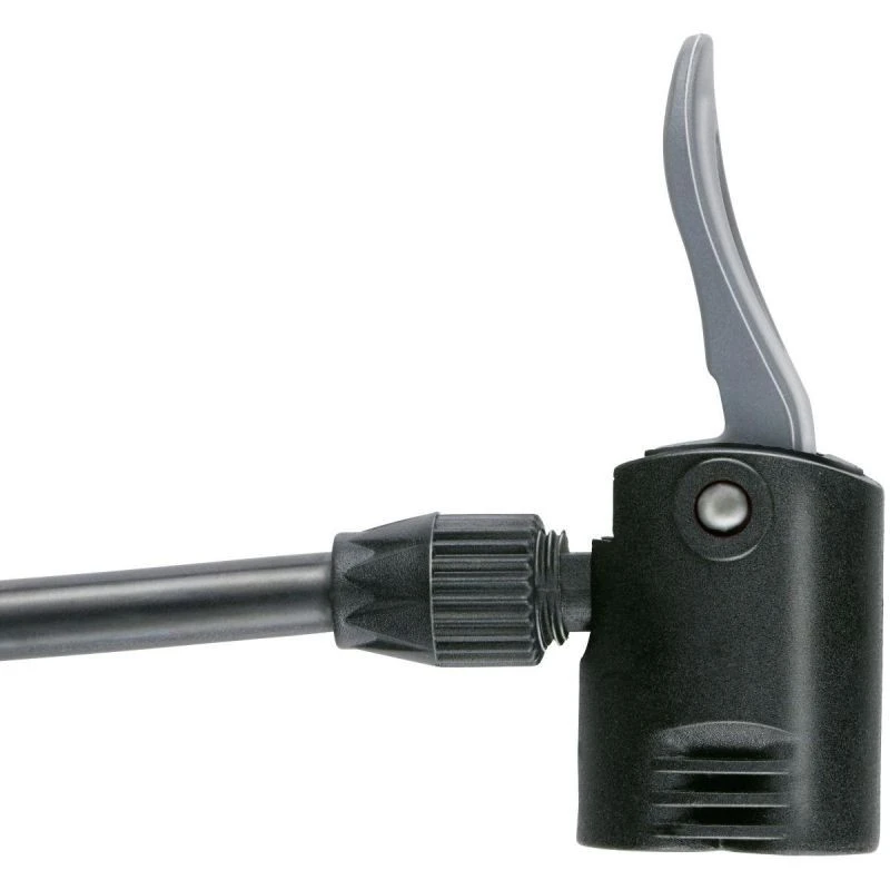 Hadice má speciální zajišťovací systém, který ji bezpečně upevní k ventilu, takže při pumpování neuniká vzduch. Díky robustní rukojeti a opěrce nohou je pumpování pohodlné i při vysokém tlaku.