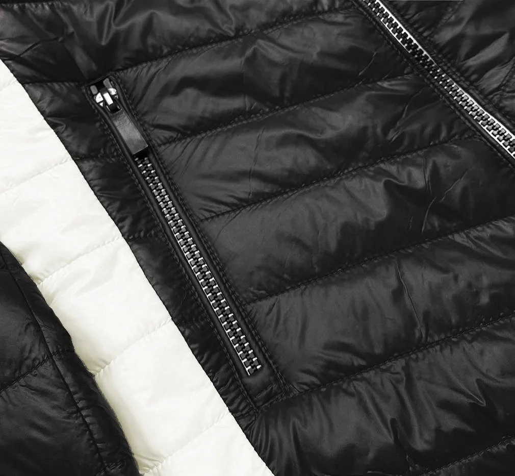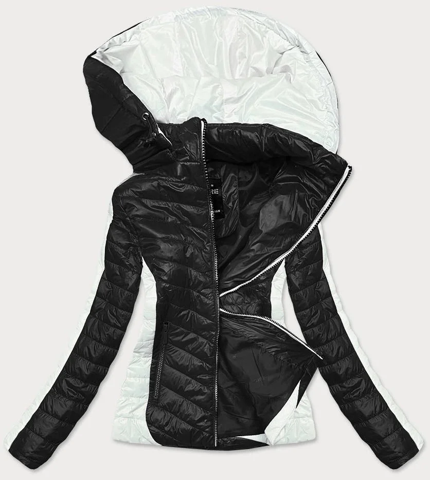 Dvoubarevná černá/ecru dámská bunda s kapucí (6318)
