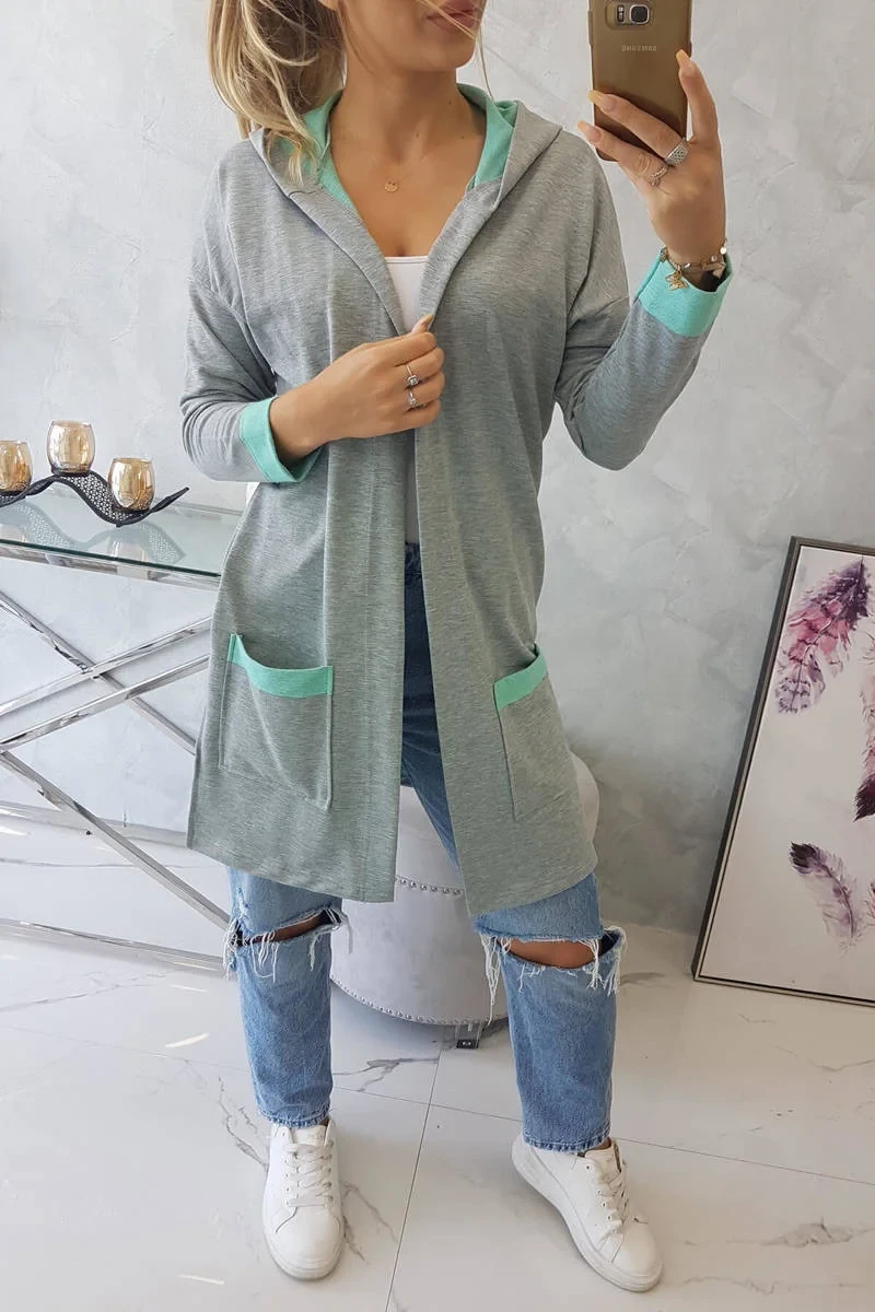 Dvoubarevná pláštěnka s kapucí mátová+šedá