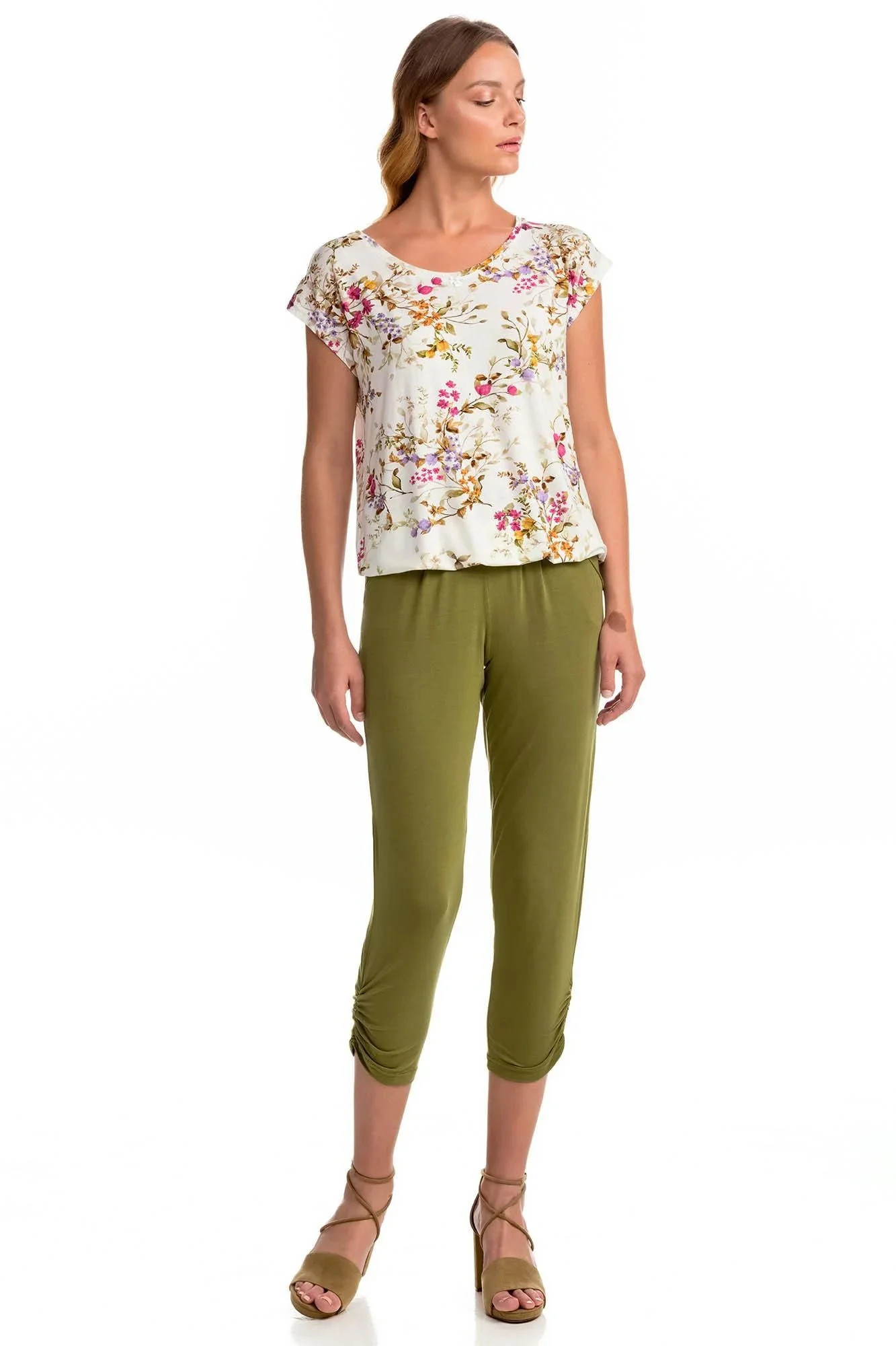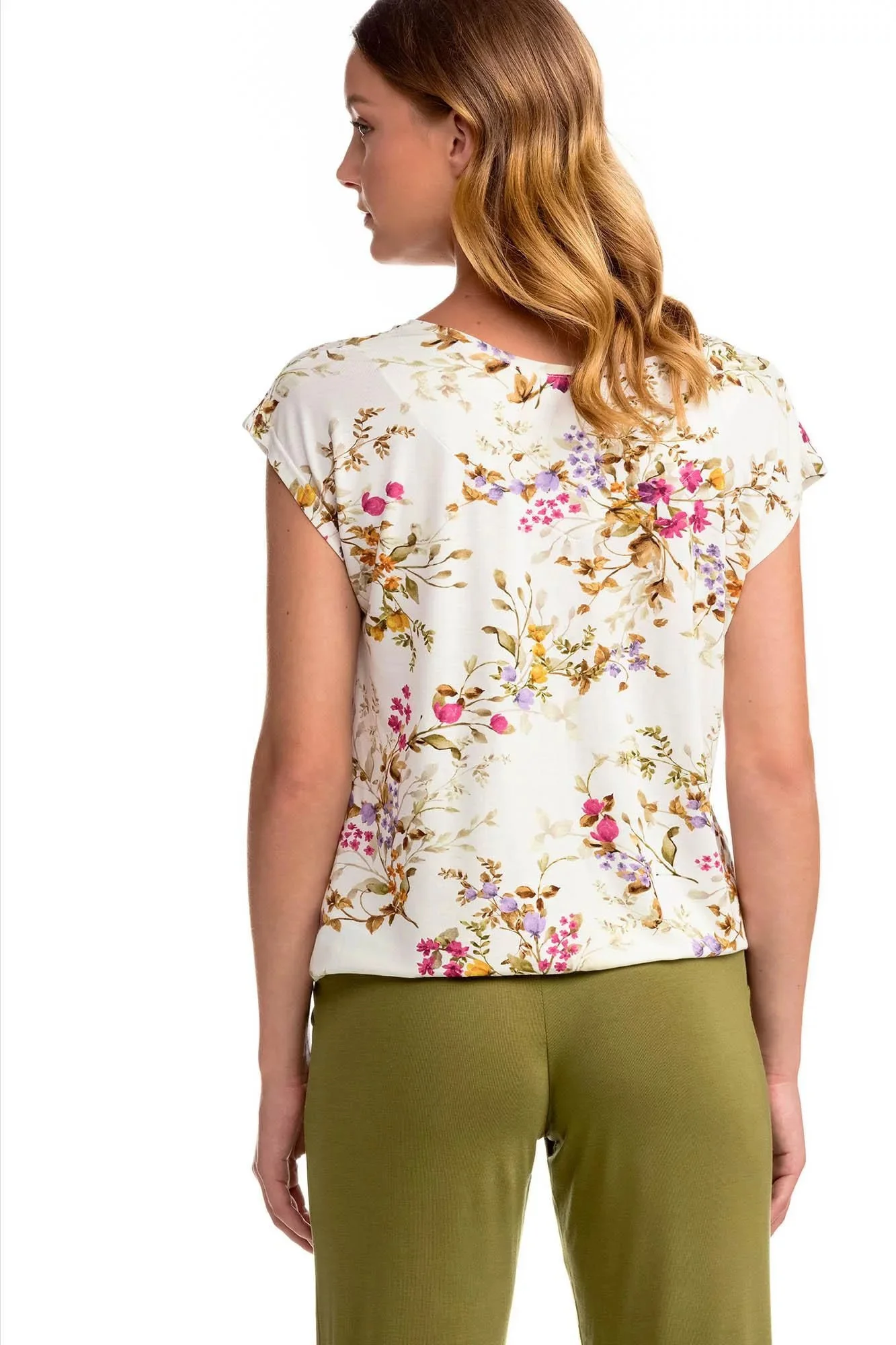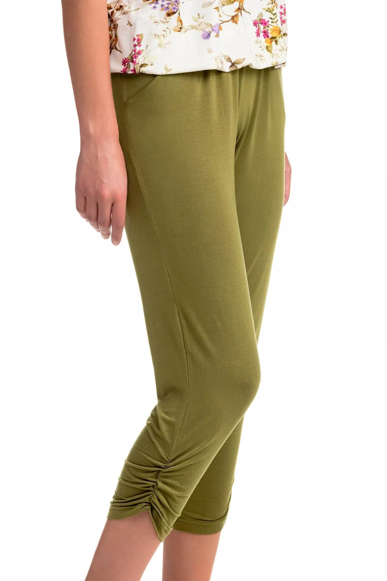 Dámské pyžamo s květovým motivem pro pocit vyjímečnosti a pohodlné spaní. Set tvoří jednobarevné kalhoty v 7/8 délce. Dvoudílné pyžamo je vyrobeno z vysoce kvalitního Micro-modalu s příměsí Elastanu. Přírodní Micro-modal poskytuje vyjímečnou měkkost a pohodlí, je prodyšný, při praní se nesráží, dobře absorbuje pot a rychle schne, zatímco Elastan dodává oděvu potřebnou pružnost.