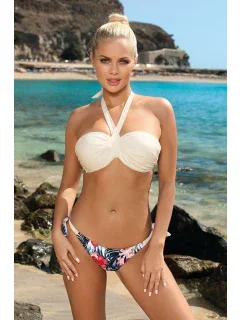 Dvoudílné plavky. Výstřih ve tvaru srdce pozvedne a zvětší prsa. Push-up velký, odnímatelný model. Podprsenka se zapíná na zádech. Odnímatelné, nastavitelné popruhy. Kalhotky vyššího typu brazyliany. Vyrobeno z italské tkaniny Carvico Tessuti. Polský výrobek. Tip: objednejte si větší velikost než obvykle.