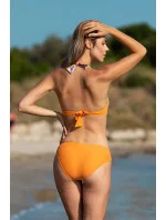 Dámské dvoudílné plavky Atun. Elegantní oranžová barva je doplněna módní grafikou na podprsence. Košíčky podprsenky jsou měkké a zavazují se za krkem a na zádech. Atraktivní barevný motiv dodává plavkám na půvabu. Hladké kalhotky s ozdobným páskem se zapínáním na přezku. Plavky, které zdůrazní přednosti vaší postavy a smyslně je odhalí. Budete v nich vypadat fenomenálně!