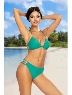 Elegantní zelené dámské dvoudílné plavky Etna Amelia 39/G barva 084. Plavky s vyztuženými košíčky a vyjímatelnými zvětšujícími vložkami. Dekolt a ramínka na zádech jsou zdobené bižuterními prvky. Podšité kalhotky, zavazují se na bocích. Ideální plavky do bazénu i na pláž. Střídmé, sexy plavky, které zdůrazní vaši krásnou postavu.