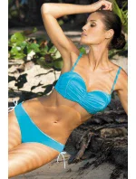 Elegantní plavky v mnoha barvách. Vyztužené košíčky jsou zdobené efektní řasením a puntíky. K velikostem S, M a L jsou push-up vycpávky. Díky nim mají prsa plnější tvar. Boky jsou vyztužené. Model má nastavitená, odpinatelná ramínka. Kalhotky klasického střihu mají nastivetelné boky. Plavky jsou ušité z kvalitní, italské látky. Vhodné na plavání i opalování.