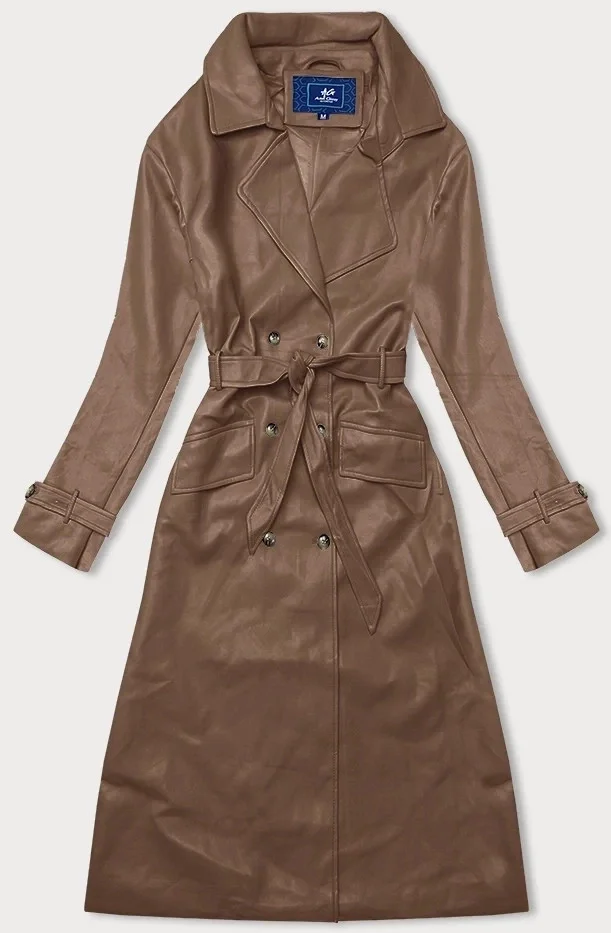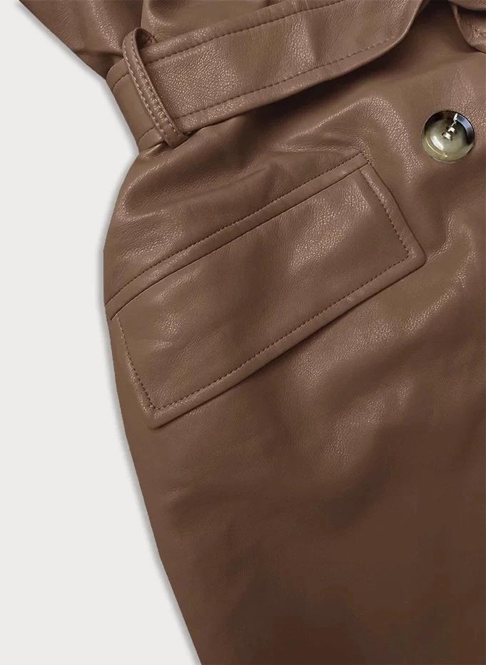 Dvouřadový klasický dámský kabát z ekologické kůže AnnGissy ve velbloudí barvě (AG6-30)