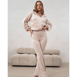 Dwuczęściowy komplet welurowy ze spodniami typu dzwony Goodlookin beżowy (821144)
