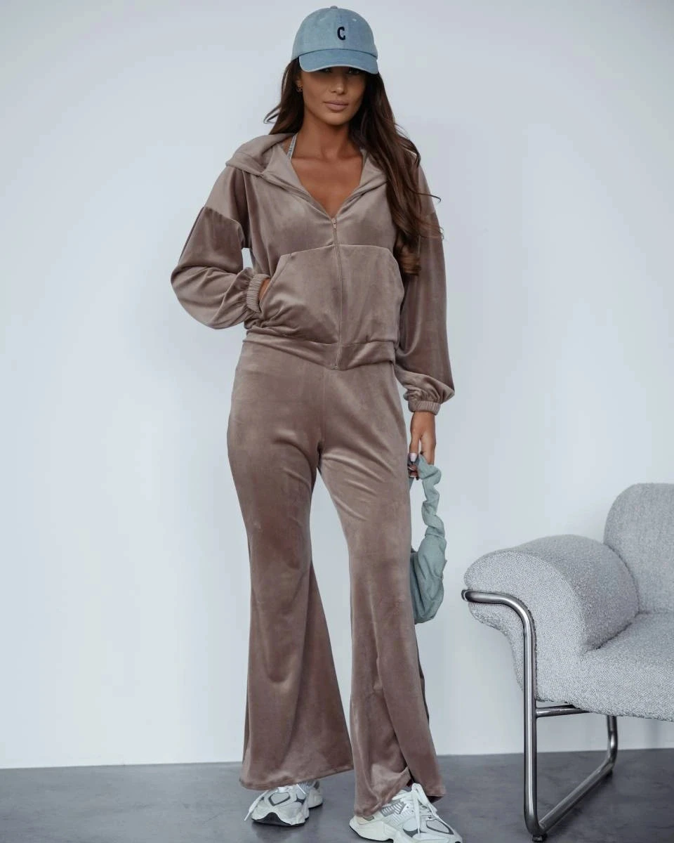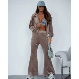 Dwuczęściowy komplet welurowy ze spodniami typu dzwony Goodlookin cappuccino (821144)