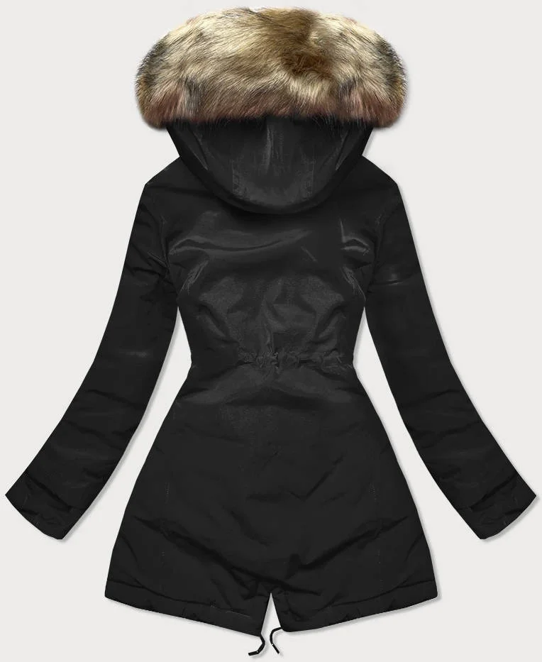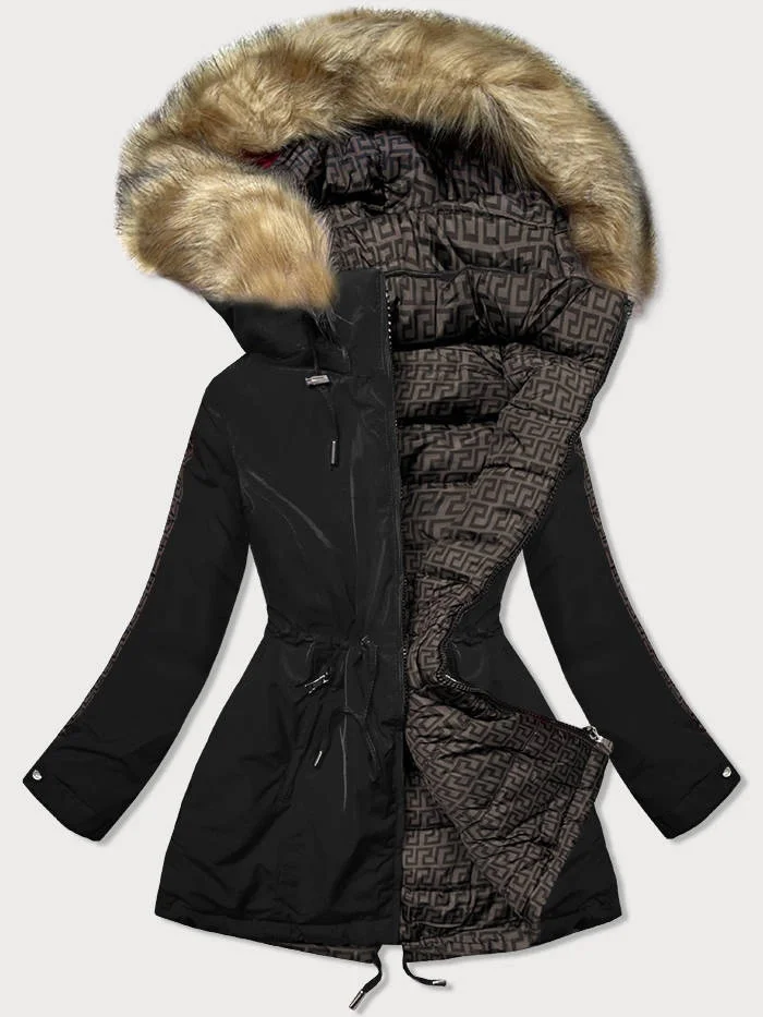 - Odpinany kaptur z trokami ściągającymi i odpinanym futerkiem