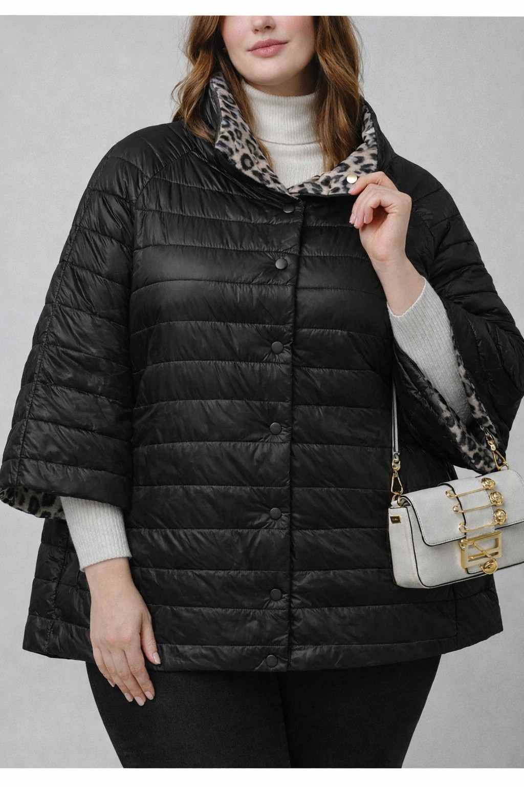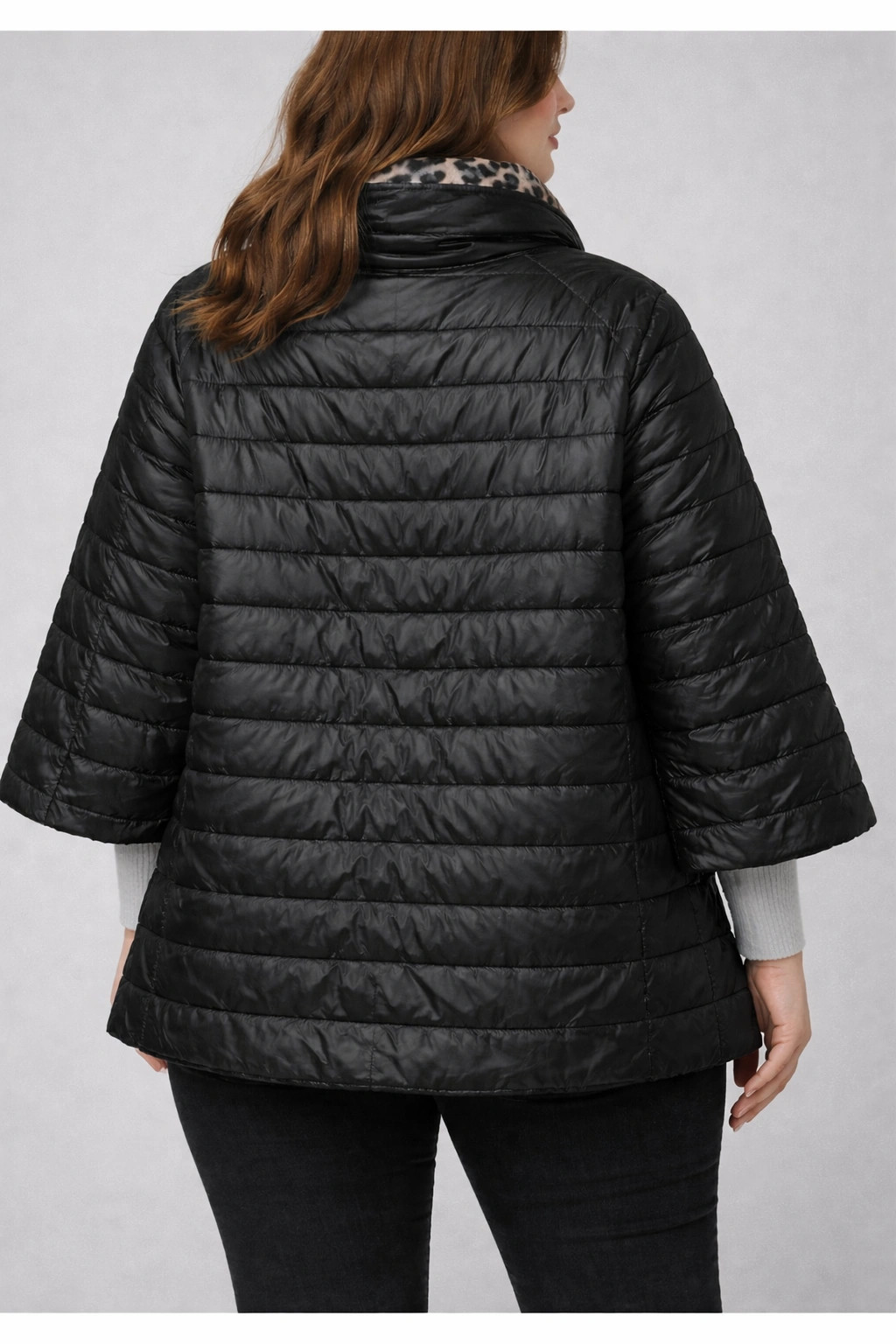 Dwustronna kurtka damska plus size z rękawem 3/4 Goodlookin czarna/panterka (M6-6308-1)