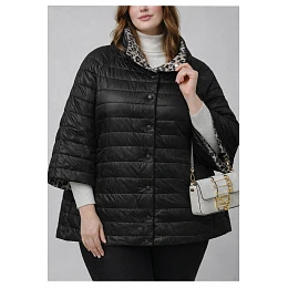 Přidání recenze k Dwustronna kurtka damska plus size z rękawem 3/4 Goodlookin czarna/panterka (M6-6308-1)
