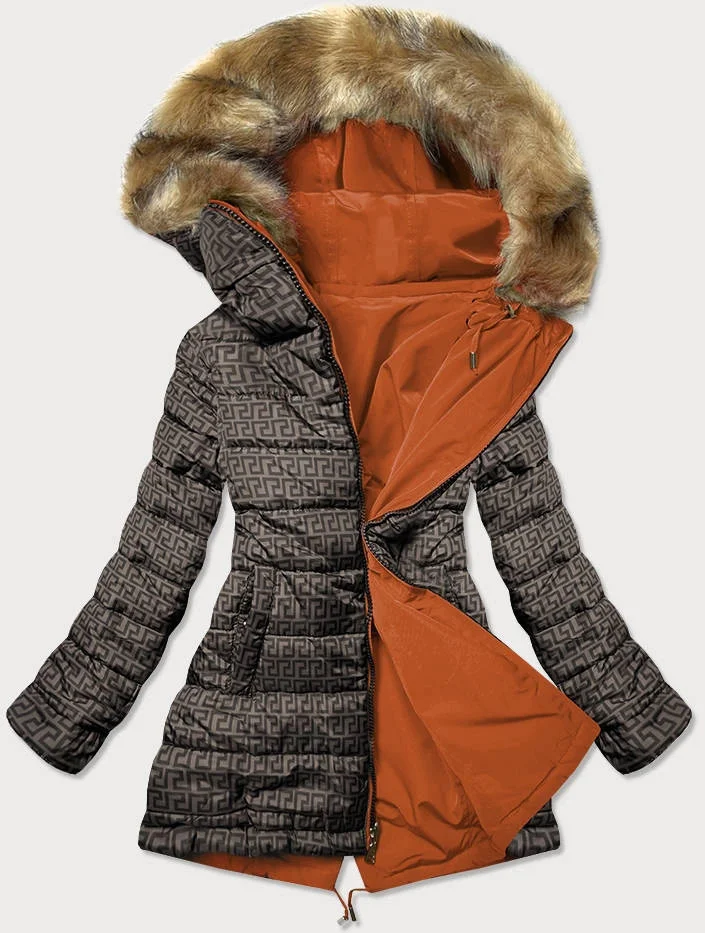 DWUSTRONNA KURTKA DAMSKA POMARAŃCZOWO- BRĄZOWA (W555)