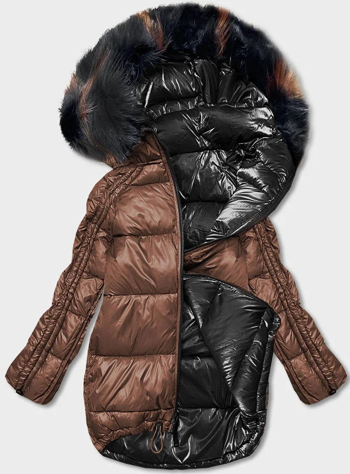 DWUSTRONNA KURTKA OVERSIZE CZARNO-BRĄZOWA (H-1088-01)