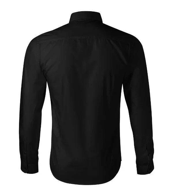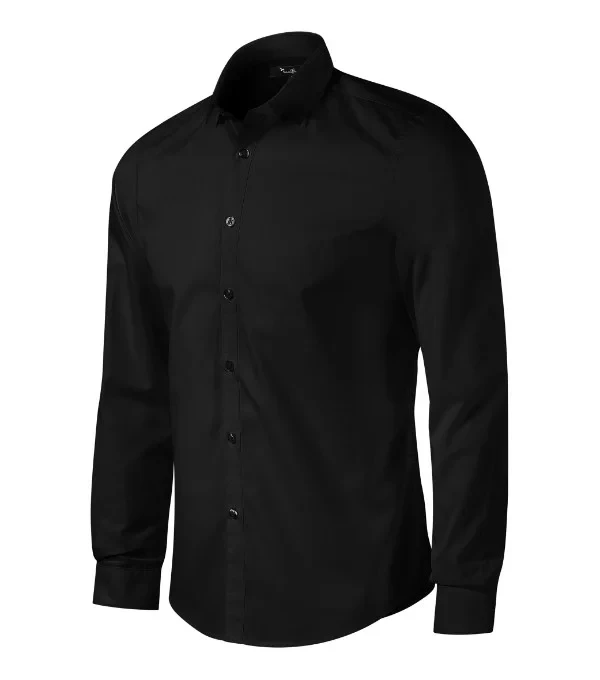 projmutý střih s bočními švy dvojité sedlo a záševky na zadním dílu dvoudílný košilový límec vyztužené špičky límce přední kraje začištěny légou dlouhé rukávy s šikmou manžetou na 2 knoflíčky perleťové knoflíčky v barvě materiálu (1 náhradní navíc) tvarovaný dolní kraj