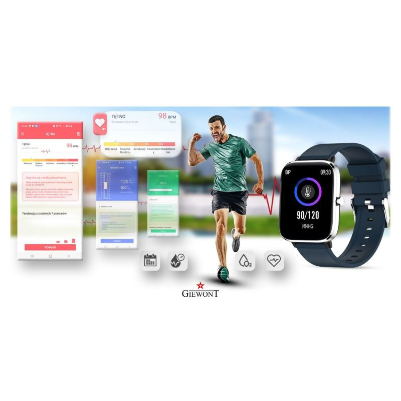 Díky senzoru můžete kdykoli měřit nebo provádět měření: krevního tlaku, srdečního tepu nebo saturace - obsahu kyslíku v krvi ve vašem těle. kontrolujte výsledky během jakékoli fyzické aktivity. Ať už jedete na kole, běháte, nebo jste prostě v práci či odpočíváte. vaše chytré hodinky Giewont se stanou osobním asistentem, který se bude každý den starat o vaše zdraví.