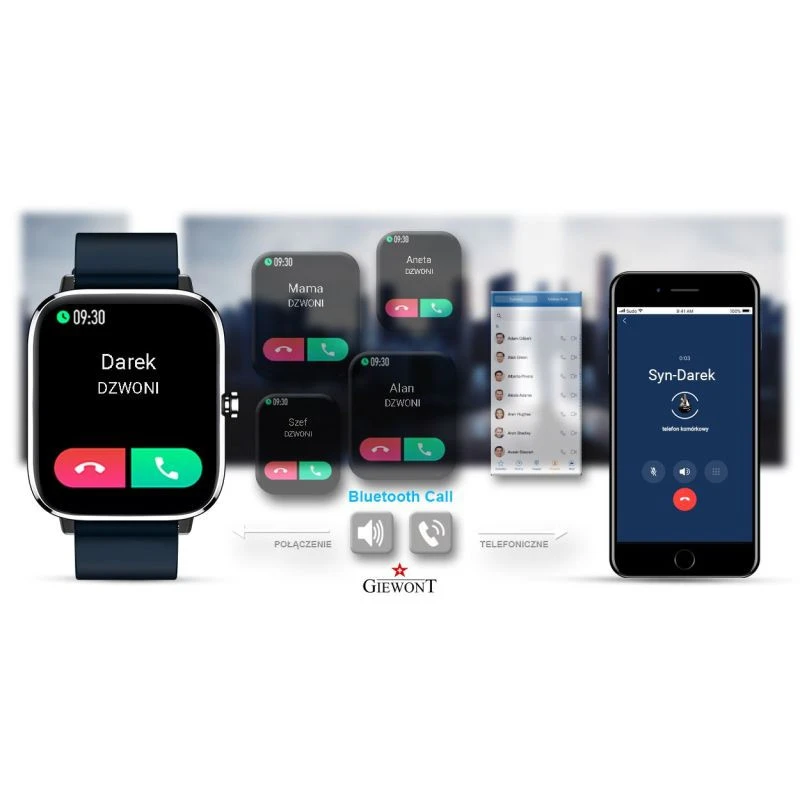 Jedná se o mimořádně elegantní a módní chytré hodinky na náramku s přídavným silikonovým řemínkem, které vás budou doprovázet při vašich každodenních aktivitách. Jejich lehké pouzdro bude ideální pro jízdu na kole, běh a další sporty, které tyto chytré hodinky umožňují. S těmito chytrými hodinkami si můžete naplno vychutnat každý pohyb - Giewont GW230 vám umožní plánovat a kontrolovat čas, vzdálenost, spálené kalorie a efekt vašeho tréninku. Během aktivity nebo relaxace můžete poslouchat a ovládat hudbu.