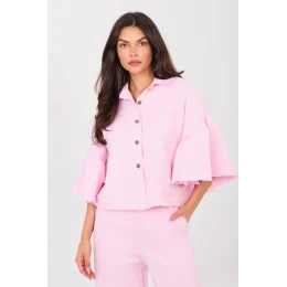 Stylová dámská džínová bunda v casual stylu, ideální na jaro a léto. Vyrobená z vysoce kvalitní bavlny, poskytuje pohodlí při nošení každý den. Krátký střih krásně zdůrazňuje postavu, a spodní část a rukávy s moderním řezáním přidávají celku lehkost a charakter. Model se zapíná na knoflíky, vpředu má praktické nášivky. 3/4 rukávy s volánem přinášejí jemný, ženský akcent, který skvěle prolomuje klasický džínový styl. Bundu nemá podšívku, což se skvěle hodí na teplejší dny. Univerzální návrh pro každodenní styling, ideální jak k šatům, tak k džínám nebo sukním.
