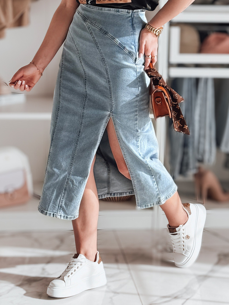 Džínová midi sukně s rozparkem MORETES modrá FashionStreet CY0481