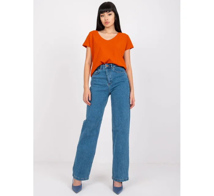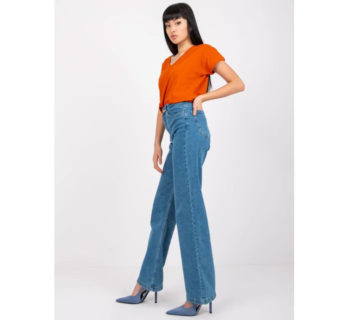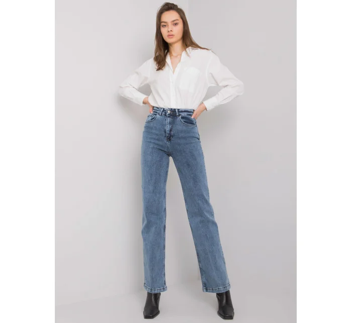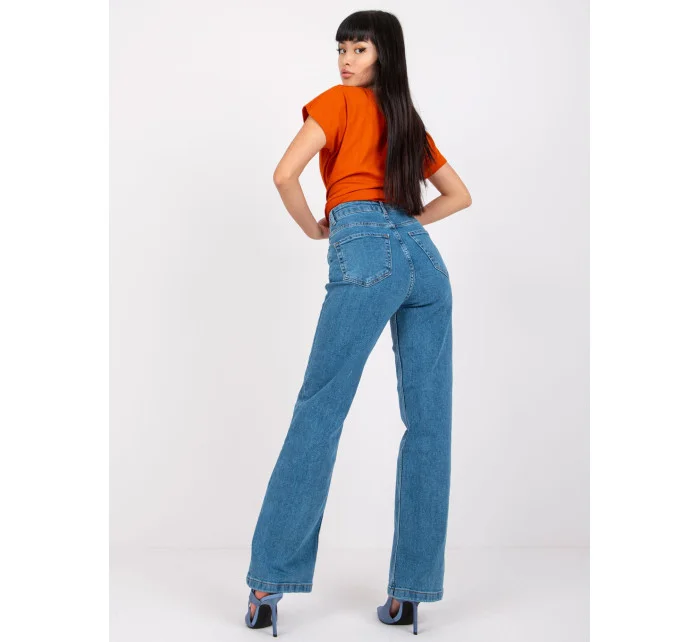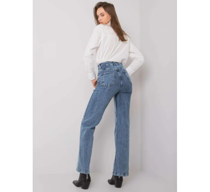 Modré rovné dámské džíny.
