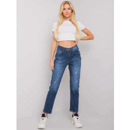 Tmavě modré džíny rovného střihu.